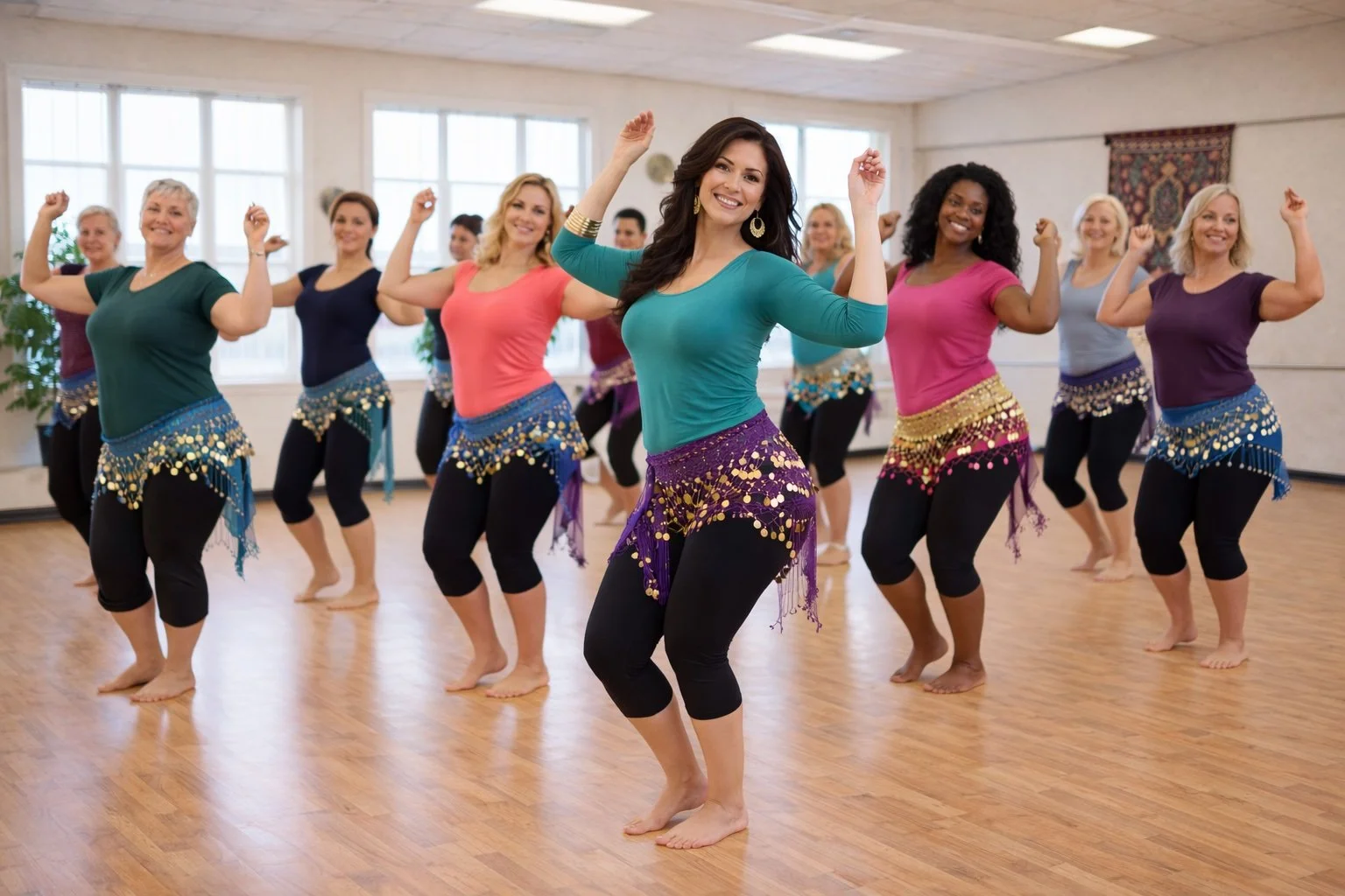 What is Middle Eastern dance? Known in the west by the misnomer “belly dance,” this solo, improvised form is both a social dance, done by women throughout the Middle East in the home and at celebrations, as well as a theatrical dance form. Learn the foundational movements and techniques of this feminine and fun dance form that will develop your confidence, coordination, and body awareness and improve your posture, fitness and flexibility. This beginner-friendly, low-impact class is designed for all ages, bodies and experience levels, with no previous dance or athletic experience required. Wear workout clothes or anything that is comfortable and not constraining to move in, socks or bare feet are recommended.
